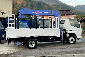高所の伐採では、クレーンを利用する事で時間の短縮などが図れます。当社は自社クレーンですので、レンタル費用など余分な経費がかかりません。